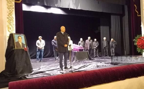 “Report”un cənub bürosu xəbər verir ki, mərhumun tabutu son dəfə vidalaşmaq üçün teatrın səhnəsinə qaldırılıb.