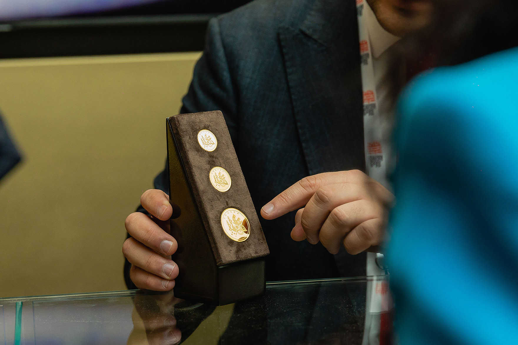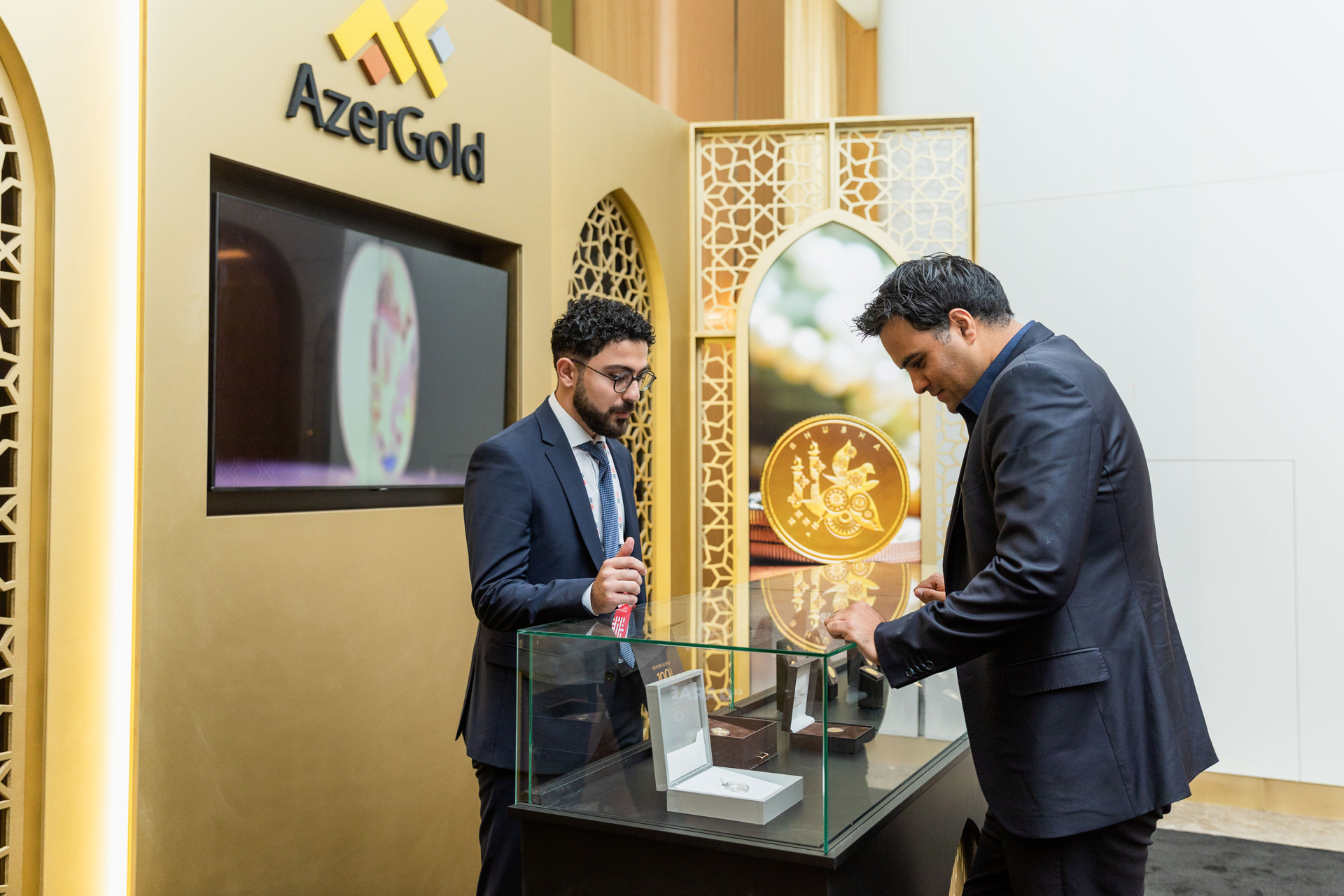 “AzerGold”un stendində Ümummilli Lider Heydər Əliyevin anadan olmasının 100-cü ildönümü münasibətilə “Smartminting” texnologiyası əsasında üçölçülü formatda ərsəyə gətirilmiş “100 il və onun fövqündə bir irs” qızıl sikkəsi, İçərişəhərə, həmçinin Heydər Əliyev Fondunun 20 illiyinə həsr olunmuş qızıl sikkə, yeni nəsil “Bakı” gümüş sikkəsi və digər tematik sikkələr yer alıb.