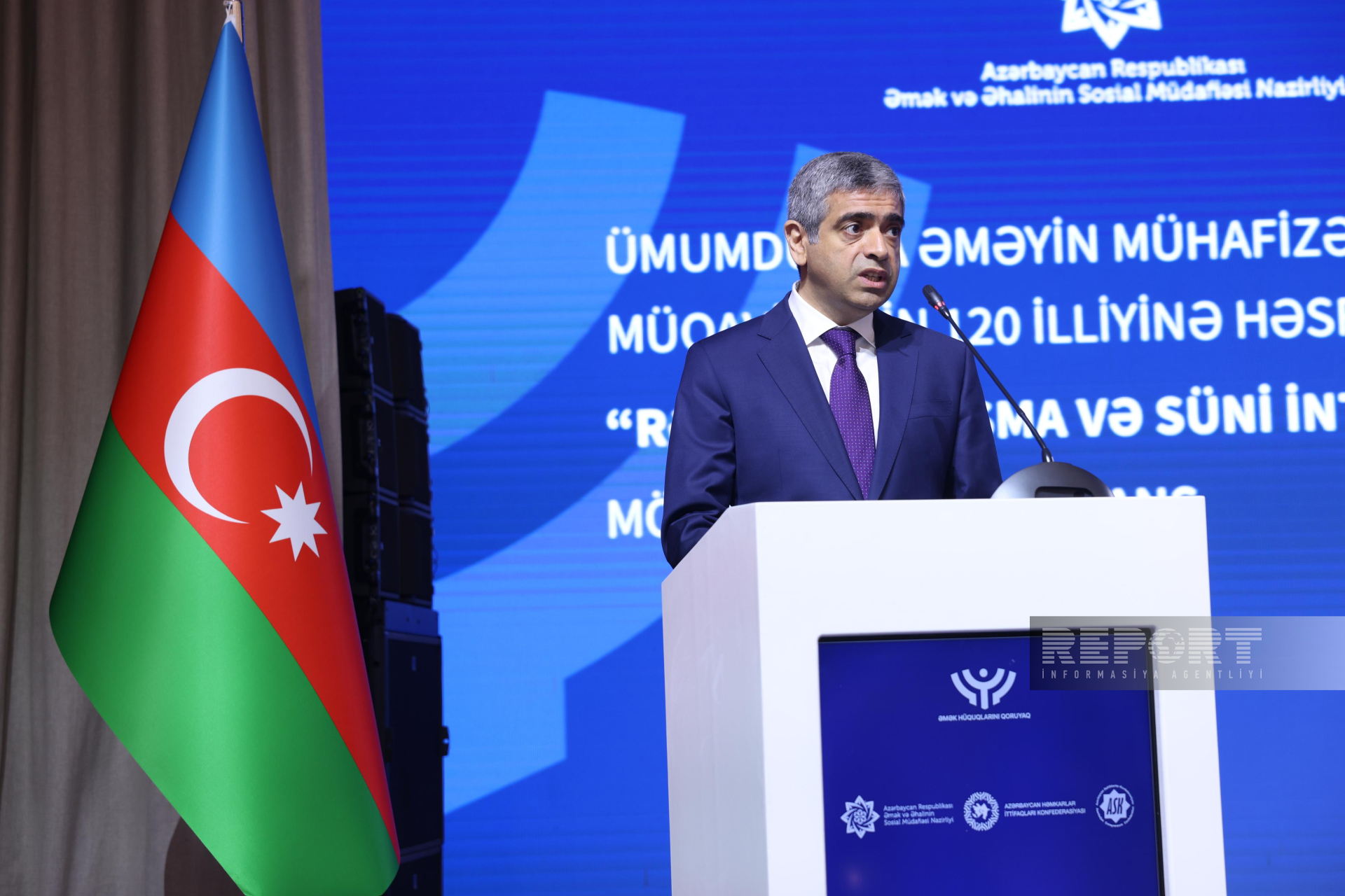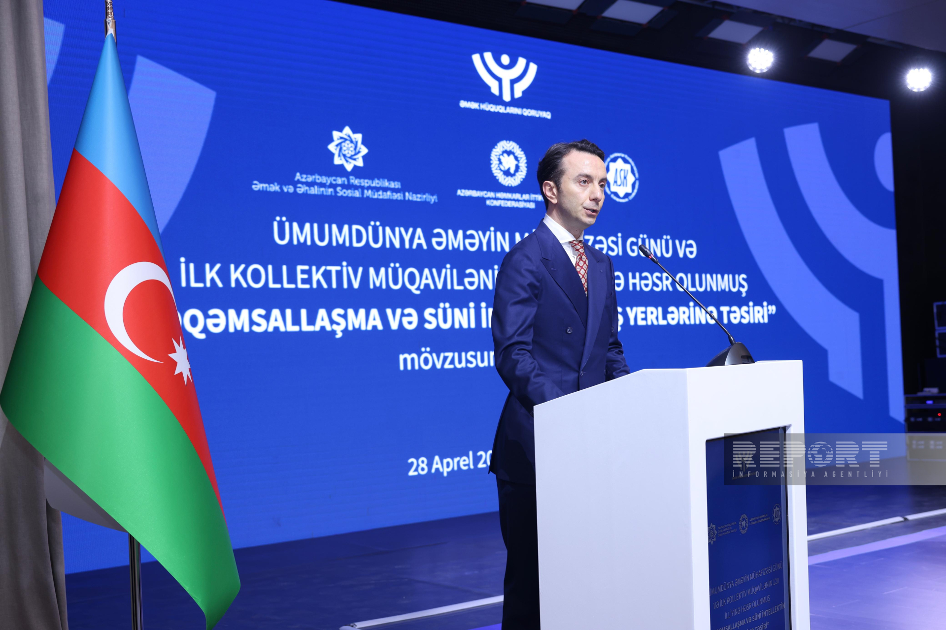 Bu gün Bakıda Əmək və Əhalinin Sosial Müdafiəsi Nazirliyi, Azərbaycan Həmkarlar İttifaqları Konfederasiyası (AHİK) və Sahibkarlar (İşəgötürənlər) Təşkilatları Milli Konfederasiyasının (ASK) birgə təşkilatçılığı ilə 28 Aprel – Ümumdünya Əməyin Mühafizəsi Günü və ilk kollektiv müqavilənin 120 illiyinə həsr olunmuş “Rəqəmsallaşma və süni intellektin iş yerlərinə təsiri” mövzusunda konfrans keçirilib.