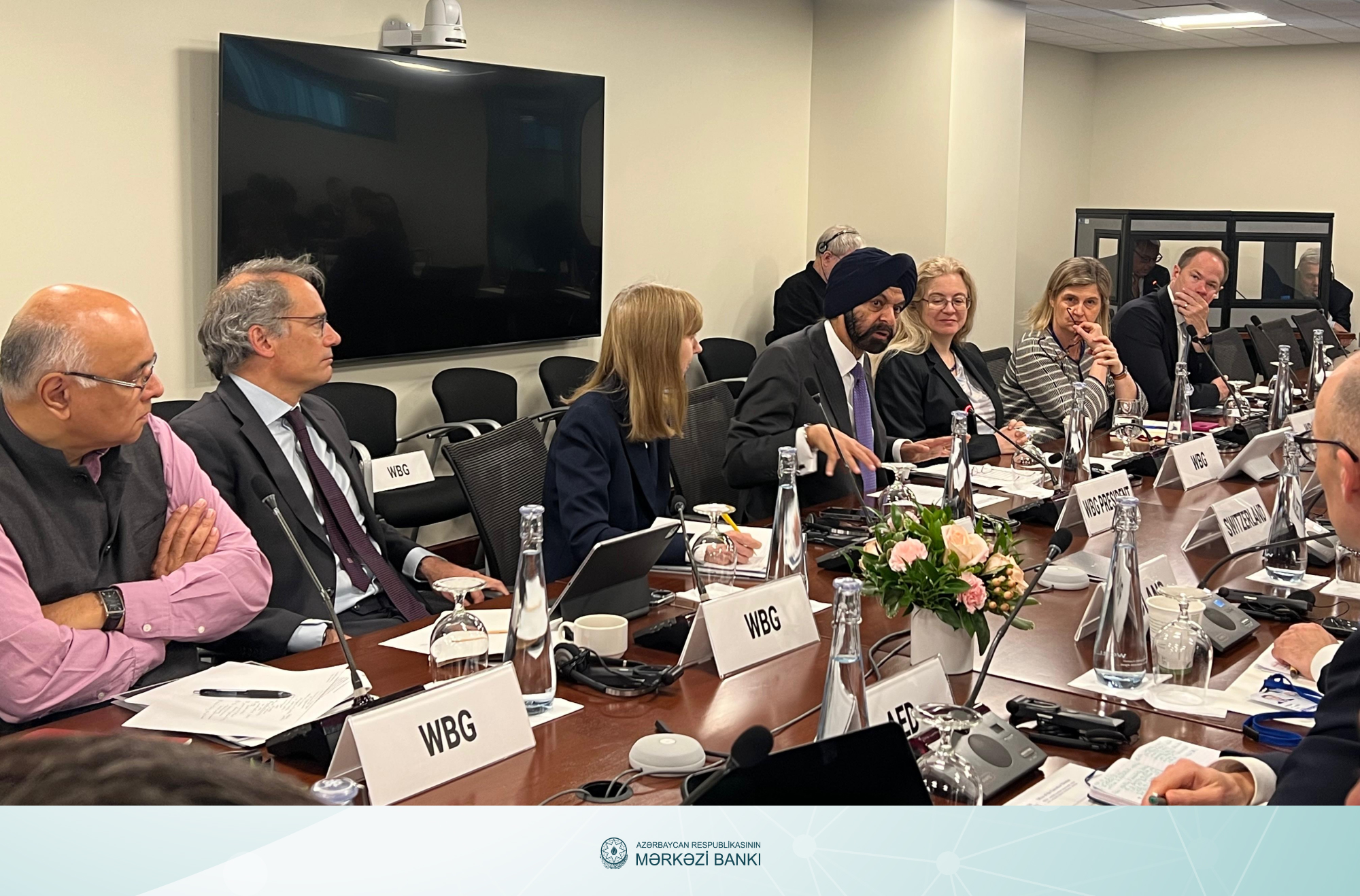 Məlumata görə, qurumun sədrinin I müavini Əliyar Məmmədyarov ABŞ səfəri çərçivəsində Dünya Bankı Qrupunun prezidenti Acay Banqa ilə görüşdə iştirak edib. Görüşə Dünya Bankına daxil olan təşkilatların, eləcə də Azərbaycanın da təmsil olunduğu Seçki Qrupuna üzv ölkələrin mərkəzi bankları və maliyyə nazirliklərinin rəhbər şəxsləri qatılıb.