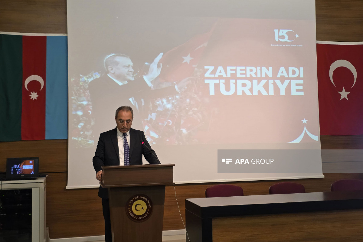Tədbirdə 15 iyul hadisələrini və Türkiyənin inkişafını əks etdirən videoçarxlar nümayiş olunub.