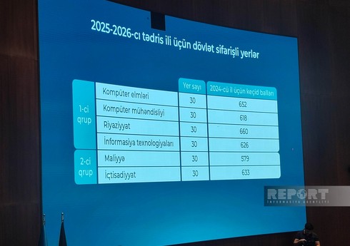 "I qrup üzrə Kompüter elmləri, Kompüter mühəndisliyi, Riyaziyyat, İnformasiya texnologiyaları ixtisaslarının hər birinə 30 yer, ll qrup üzrə isə Maliyyə, İqtisadiyyat ixtisaslarının hər birinə 30 yer ayrılıb. Gələcəkdə dövlət sifarişli yerlərin sayı və ixtisasların siyahısı artırılacaq".