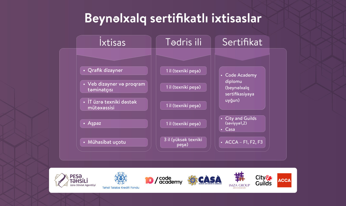 Beynəlxalq sertifikatlı ixtisaslar üzrə peşə təhsilinə tələbə qəbulu başlayıb