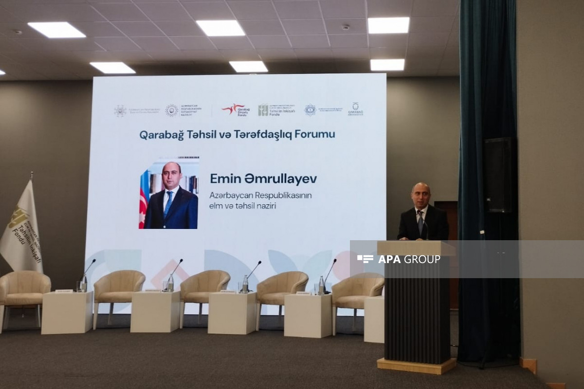 Sizinxeber.az xəbər verir ki, bunu Xankəndidə keçirilən Qarabağ Təhsil və Tərəfdaşlıq Forumunda elm və təhsil naziri Emin Əmrullayev deyib.