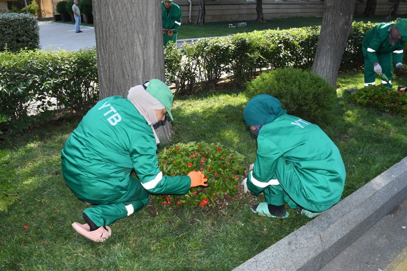 "Bütün bunlar isti havalarda yaşıllıqların qurumasının qarşısını alır. İsti havaları nəzərə alaraq, Mərkəzi Nəbatat Bağında iməcilik tədbirləri həyata keçirilib. Burada ağaclara aqrotexniki qulluq göstərilib, qurumuş budaqlar kəsilib, ağacların dibi bellənib. Ümumi istifadə olan yollar yuyulub, təmizlik işləri həyata keçirilib. Bakı Şəhər İcra Hakimiyyəti Kommunal təsərrüfat xidmətlərinin texnikası səhər saatlarından başlayaraq bitki və canlılara zərər verməyən yuyucu maddələrlə əsas küçə və prospektlərin yuyulmasını aparıb. Bu zaman həm də məhəllədaxili və ara yollar da yuyulub".