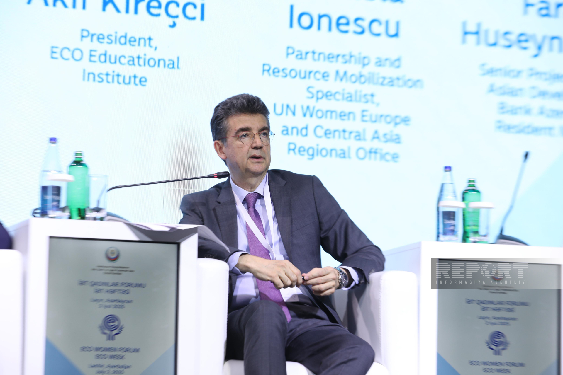"Sizinxeber.az" xəbər verir ki, BMT-nin Azərbaycandakı Rezident Əlaqələndiricisi Vladanka Andreyevanın moderatorluğu ilə baş tutan sessiyada Türkiyənin ailə və sosial xidmətlər nazirinin müavini Ləman Yenigün, Qazaxıstan parlamenti Qadın və Ailə-Demoqrafik Siyasət üzrə Milli Komissiyasının üzvü Juldız Süleymenova, Azərbaycan Elm və Təhsil Nazirliyi Təhsilin İnkişafı Fondunun sədri Elnur Nəsibov, ECO-nun Təhsil İnstitutunun rəhbəri Mehmet Akif Kireççi, BMT Qadınlar Təşkilatının Avropa və Mərkəzi Asiya üzrə Regional ofisinin əməkdaşı, tərəfdaşlıq və resursların səfərbərliyi üzrə mütəxəssis Mihaela İonesku və Asiya İnkişaf Bankının Azərbaycan nümayəndəliyinin baş layihə mütəxəssisi Fərəc Hüseynbəyov iştirak ediblər.