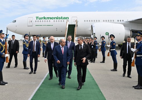 Türkmənistan Xalq Məsləhətinin sədrini Azərbaycanın Baş nazirin birinci müavini Yaqub Eyyubov, xarici işlər nazirinin müavini Samir Şərifov və digər rəsmi şəxslər qarşıladılar.