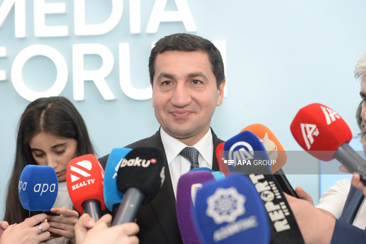 APA-nın Şuşaya ezam olunmuş əməkdaşı xəbər verir ki, bunu Azərbaycan Prezidentinin köməkçisi – Prezident Administrasiyasının xarici siyasət məsələləri şöbəsinin müdiri Hikmət Hacıyev III Şuşa Qlobal Media Forumunda jurnalistlərə açıqlamasında deyib.