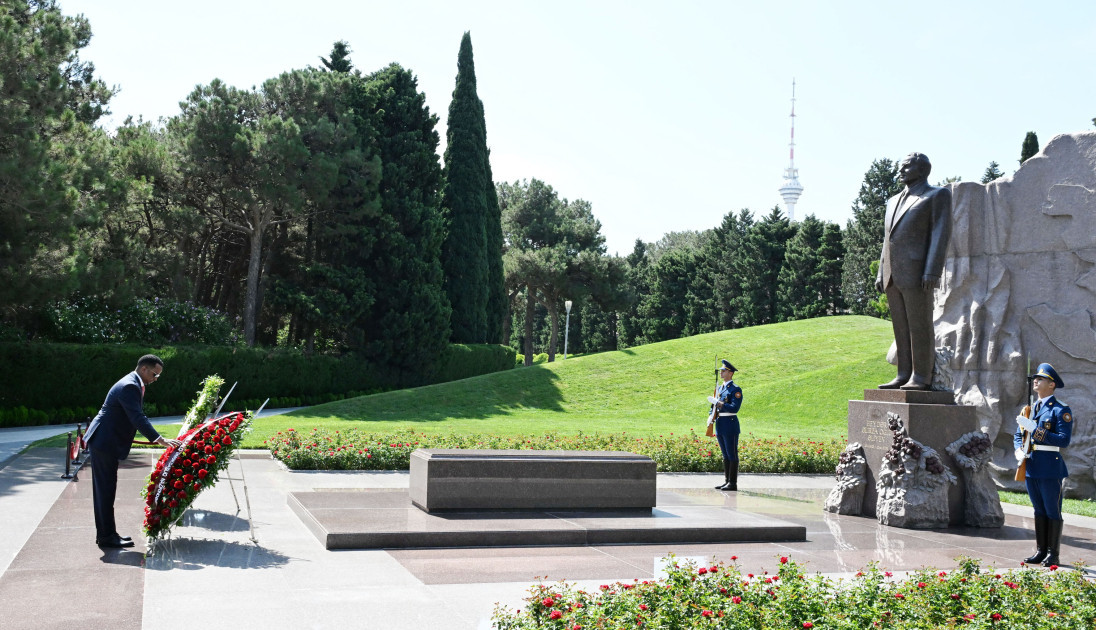 APA xəbər verir ki, nazir əvvəlcə Fəxri xiyabana gələrək, xalqımızın Ümummilli Lideri, müasir müstəqil Azərbaycan dövlətinin memarı və qurucusu Heydər Əliyevin xatirəsini ehtiramla anıb, məzarı önünə əklil qoyub.