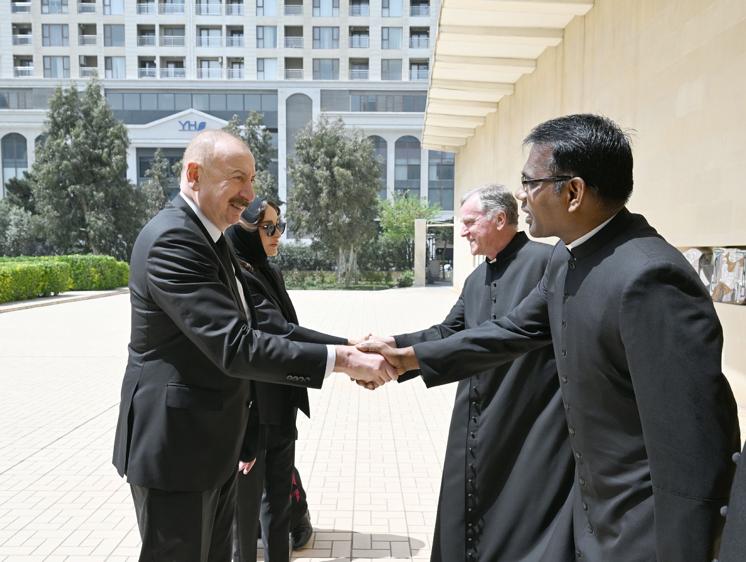 "Report" xəbər verir ki, dövlət başçısını və birinci xanımı Azərbaycanda Katolik Kilsəsinin apostol prefekti, yepiskop Vladimir Fekete qarşıladı.