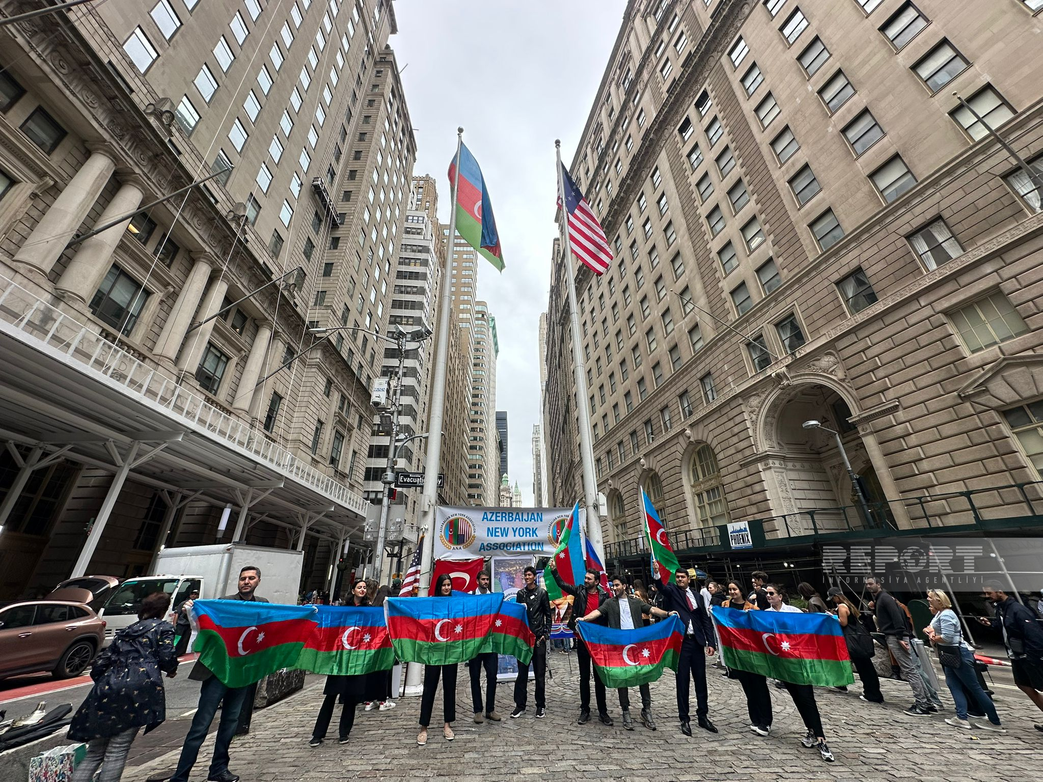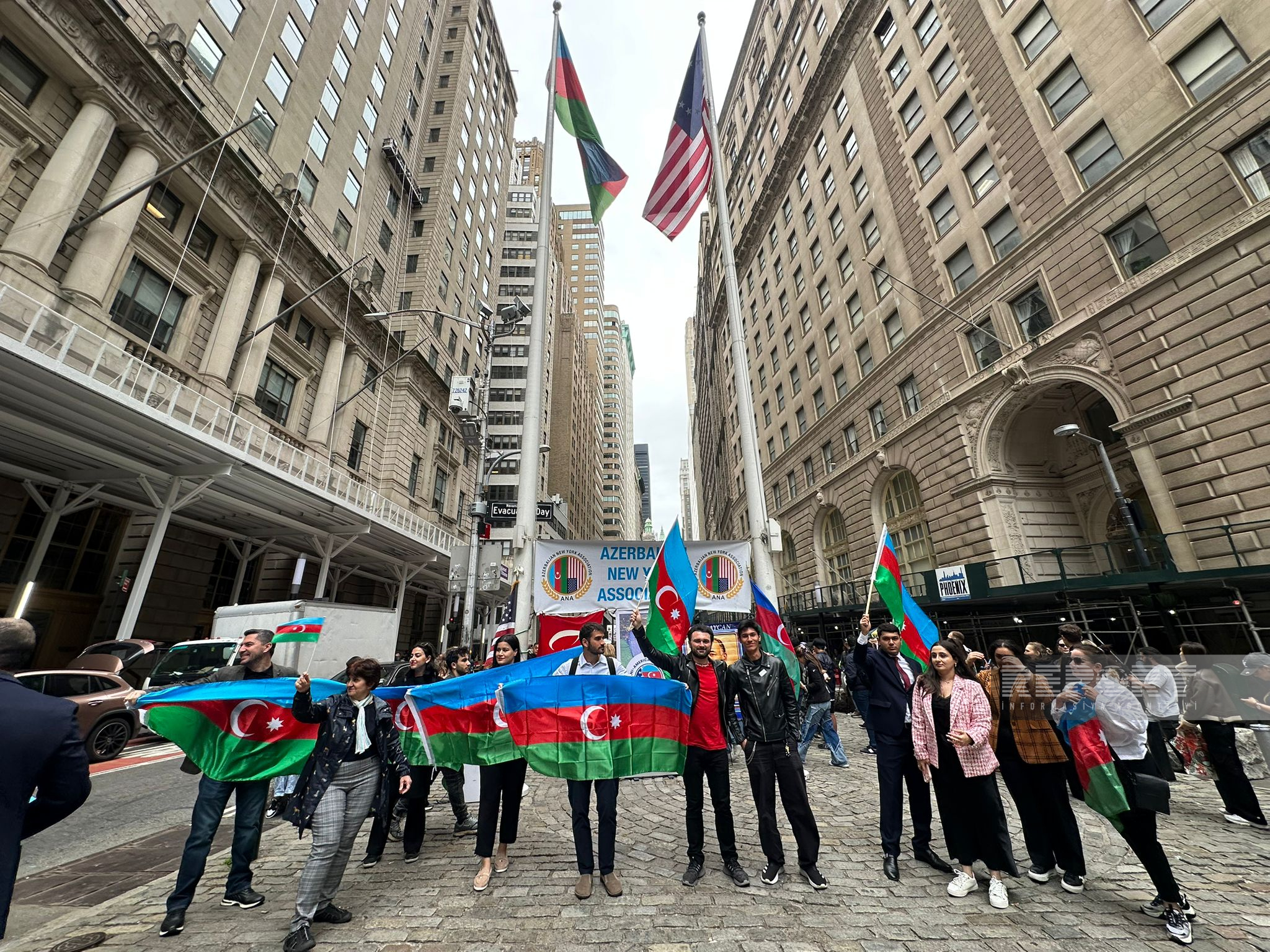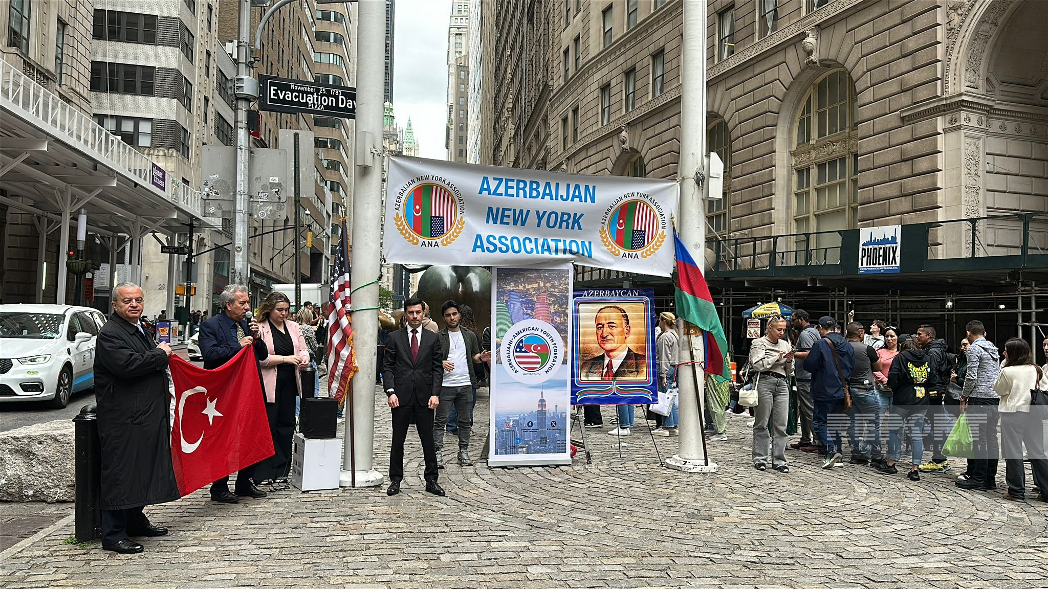 Üçrəngli, ay-ulduzlu Azərbaycan bayrağı, dövlət himninin sədaları altında Nyu-York şəhərinin simvollarından biri olan və maliyyə mərkəzi kimi tanınan “Wall Street”də, “Bowling Green” parkında yerləşən nəhəng bayraq dirəyində ucaldılıb.