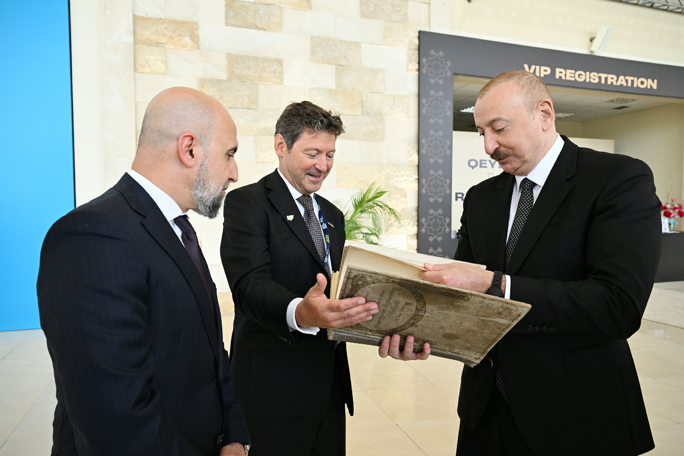 Sonra Prezident İlham Əliyev sərginin xatirə kitabını imzaladı.