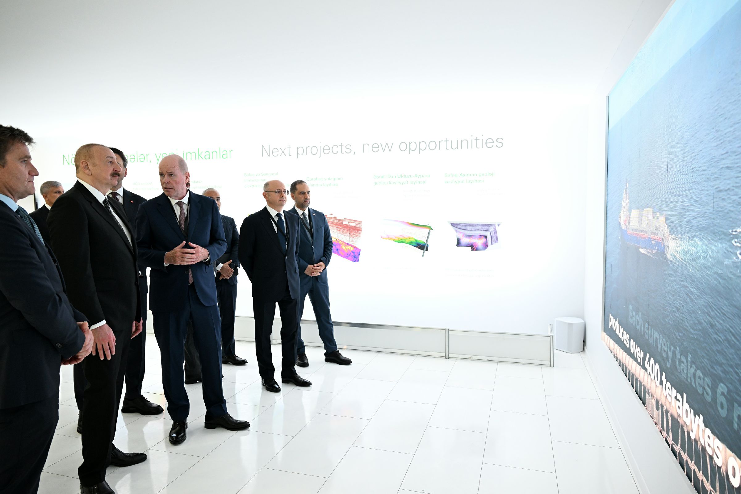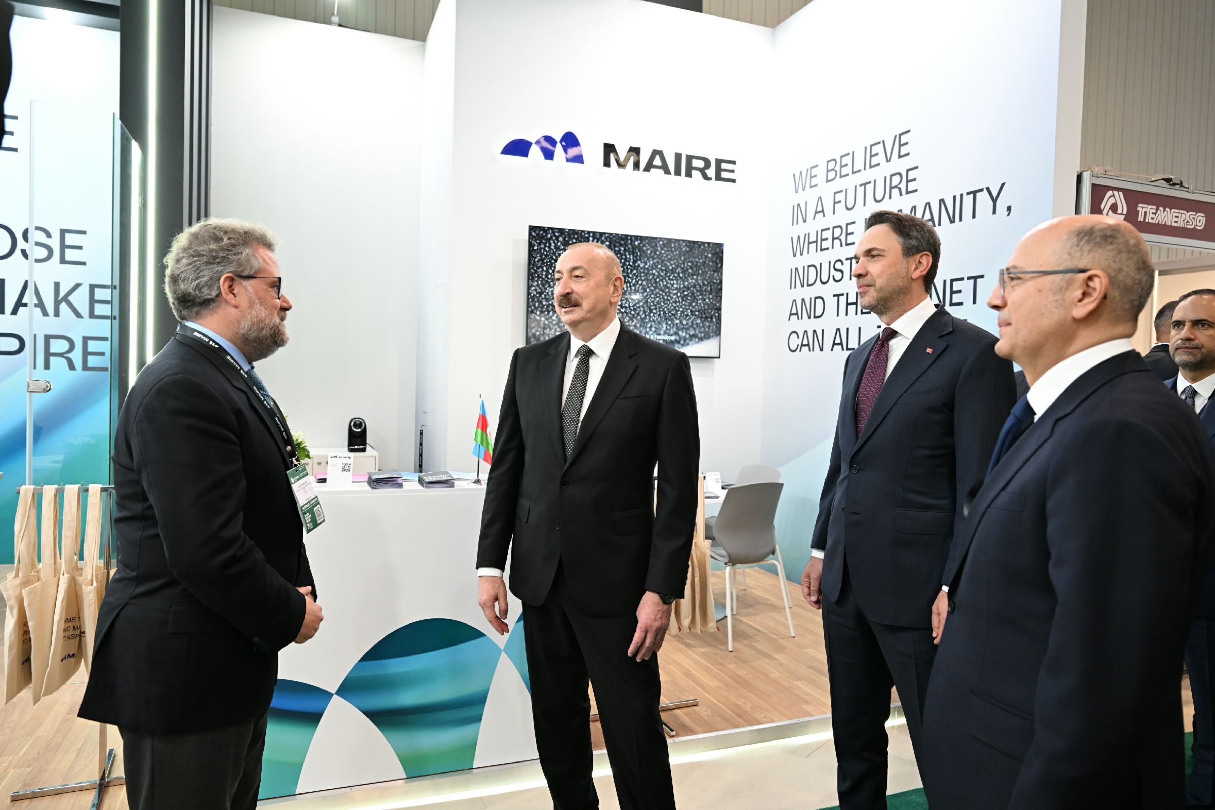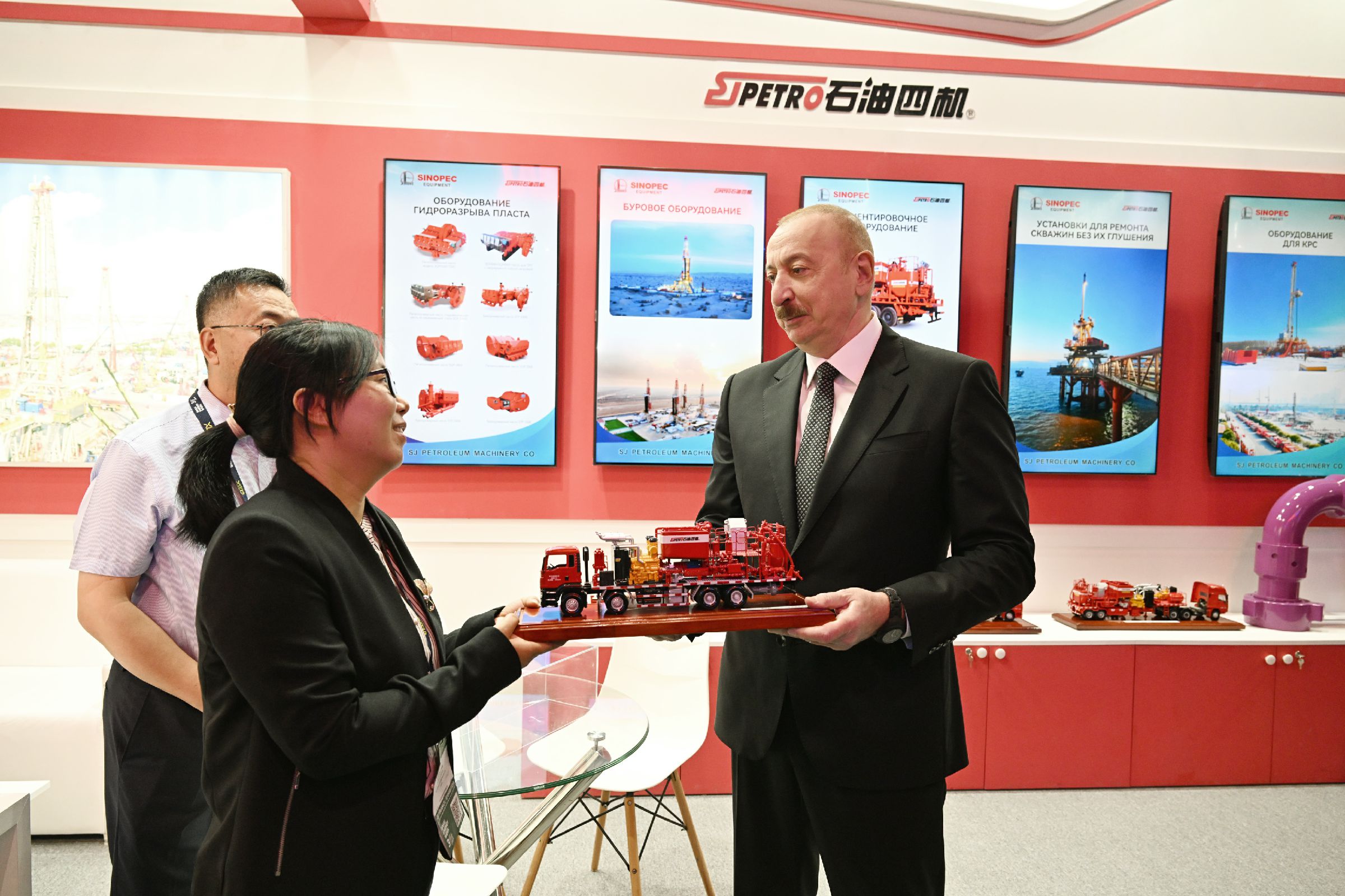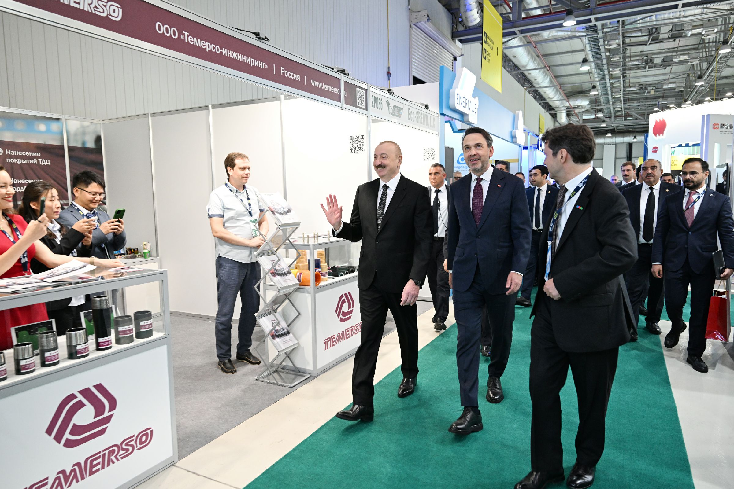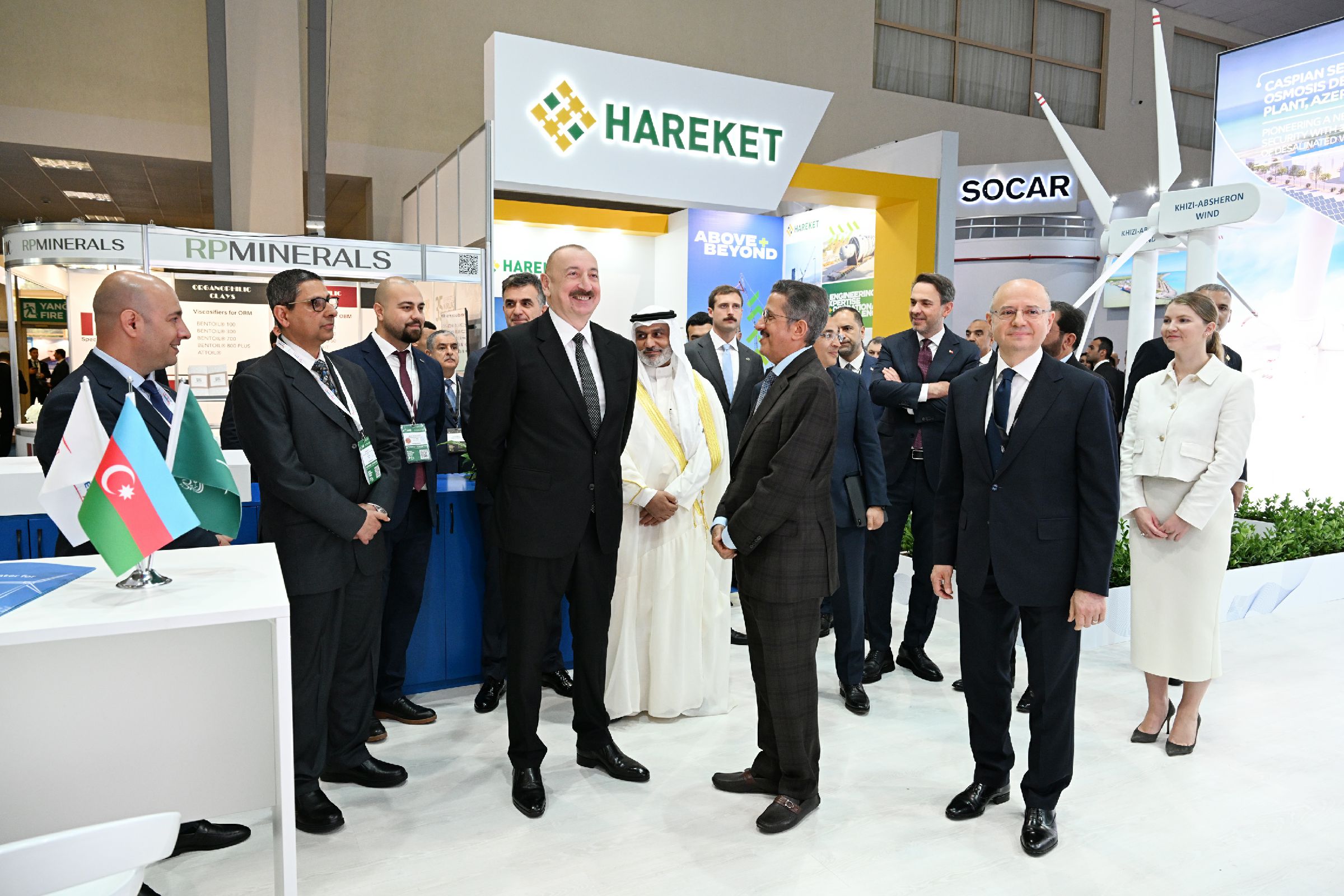 Dövlətimizin başçısı əvvəlcə Azərbaycanın və strateji tərəfdaşlarının enerji təhlükəsizliyinə mühüm töhfə verən SOCAR-ın stendinə baxdı. Bildirildi ki, SOCAR qlobal enerji şirkəti olaraq milli sərvətlərimizin beynəlxalq bazarlara çıxarılmasında strateji rol oynayır. Neft-qaz şirkətindən beynəlxalq enerji şirkətinə transformasiya istiqamətində məqsədyönlü fəaliyyətini davam etdirən SOCAR keyfiyyətli idarəetmə, şəffaflıq və müasir yanaşmalar əsasında enerji sektorundakı mövqeyini ardıcıl olaraq möhkəmləndirir. Axtarış-kəşfiyyat, hasilat, nəqletmə, emal, istehsal, marketinq, yanacağın pərakəndə satışı, qaz paylanması və bərpaolunan enerji mənbələrinin inkişafı kimi sahələrdə uğurla fəaliyyət göstərən şirkət rəqəmsallaşma, innovasiya, yaşıl enerjiyə keçid vasitəsilə davamlı inkişafı və dayanıqlı artımı təşviq edir. SOCAR, həmçinin iqlim dəyişikliyi ilə mübarizədə fəal iştirak edərək, ekoloji cəhətdən təmiz, aşağıkarbonlu və qabaqcıl texnologiyaların tətbiqinə üstünlük verir.