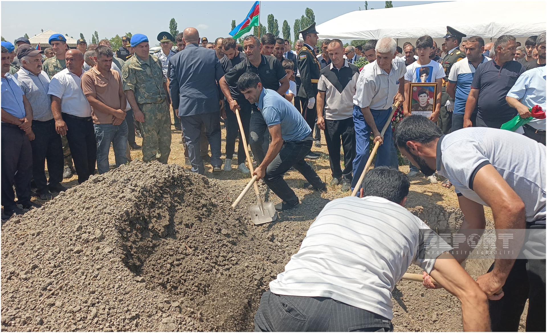 "Report"un Şimal bürosunun məlumatına görə, vida mərasimində Xaçmaz rayon icra hakimiyyətinin nümayəndələri, hüquq-mühafizə orqanlarının əməkdaşları, şəhidin ailə üzvləri və rayon ictimaiyyəti iştirak edir.