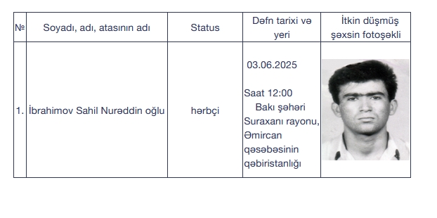 Sabah I Qarabağ müharibəsinin daha bir itkin-şəhidi dəfn olunacaq [xfgiven_updateblue][/xfgiven_updateblue]