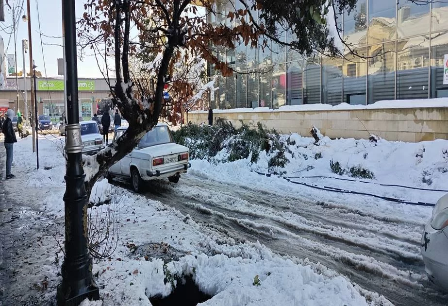 Qarlı, küləkli hava şəraiti səbəbindən Lənkəran, Masallı, Salyanda ağaclar elektrik xətlərinin üzərinə aşıb.