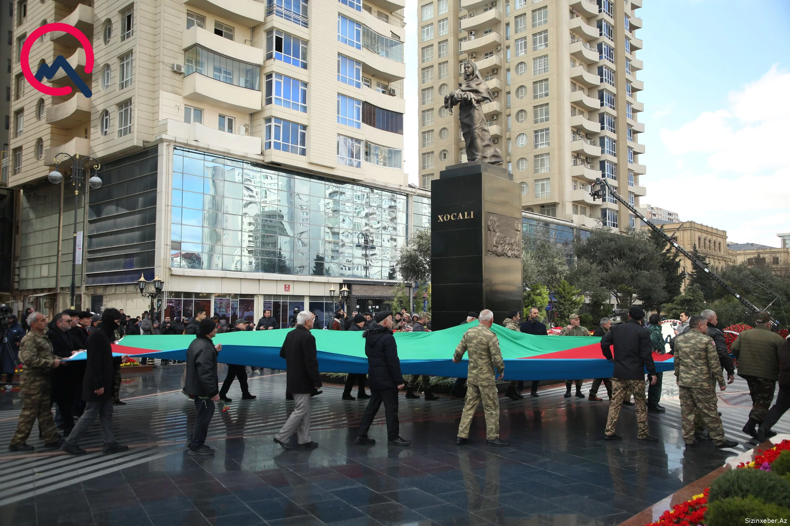Səhər saatlarından başlayaraq minlərlə insan abidənin önünə gül-çiçək düzərək faciə qurbanlarının xatirəsini anır.