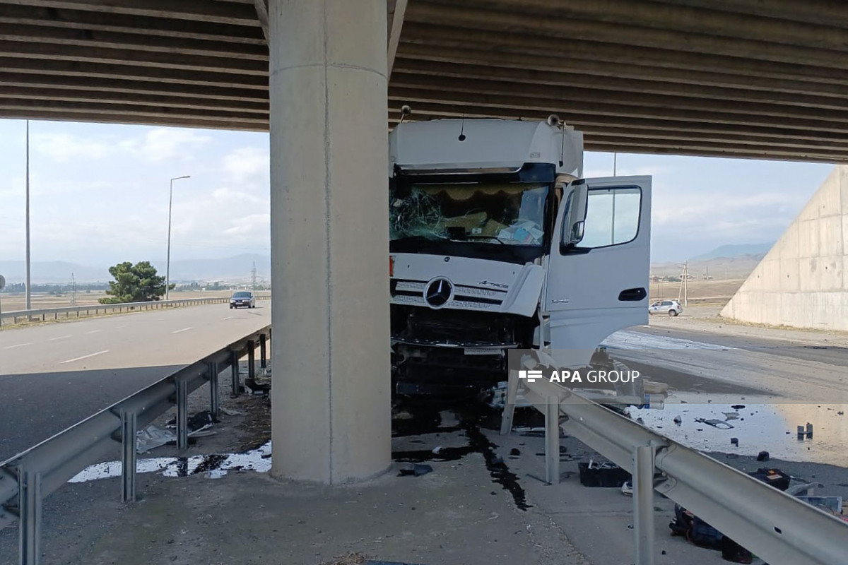 Belə ki, hərəkətdə olan TIR idarəetmədən çıxaraq körpünün beton dirəyinə çırpılıb.