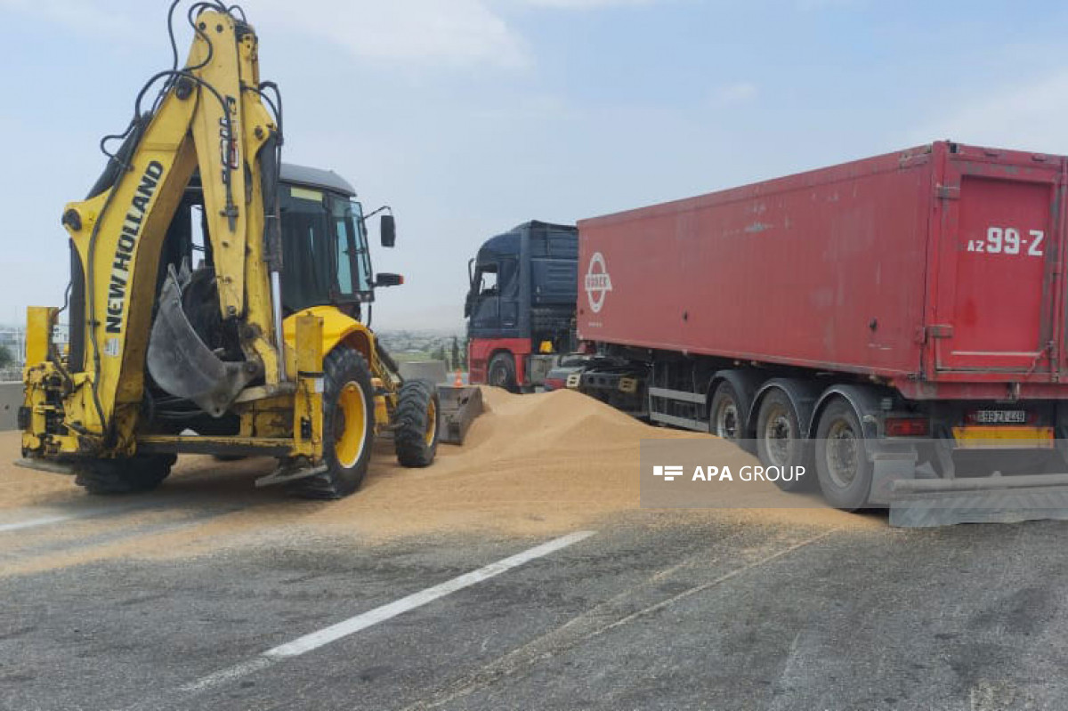 Sizinxeber.az-nın xəbərinə görə, hadisə yolun 113-cü kilometrliyində qeydə alınıb. Taxıl yüklü "Mercedes" markalı qoşqulu yük maşını aşıb.