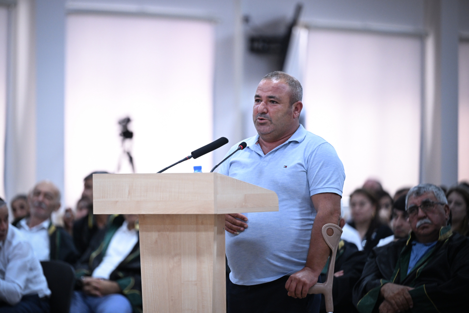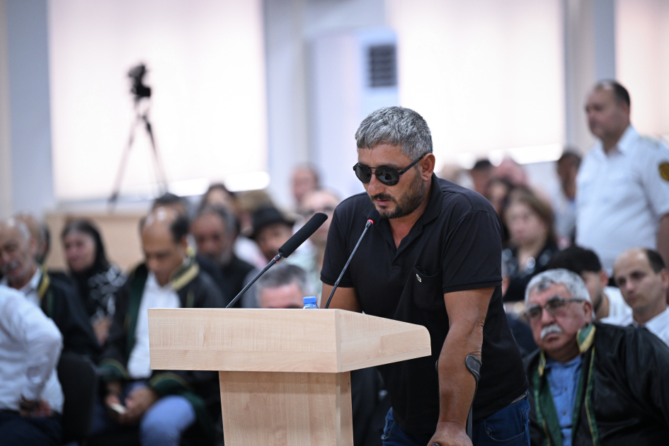 Baş Prokurorluğun Dövlət ittihamının müdafiəsi üzrə idarəsinin şöbə rəisi Nəsir Bayramovun suallarını cavablandıran zərərçəkmiş Yunis İsmayılov ifadəsində 2023-cü il sentyabrın 7-də Ağdərə istiqamətində döyüş tapşırığını yerinə yetirərkən minaya düşərək sağ ayağını itirdiyini qeyd edib.