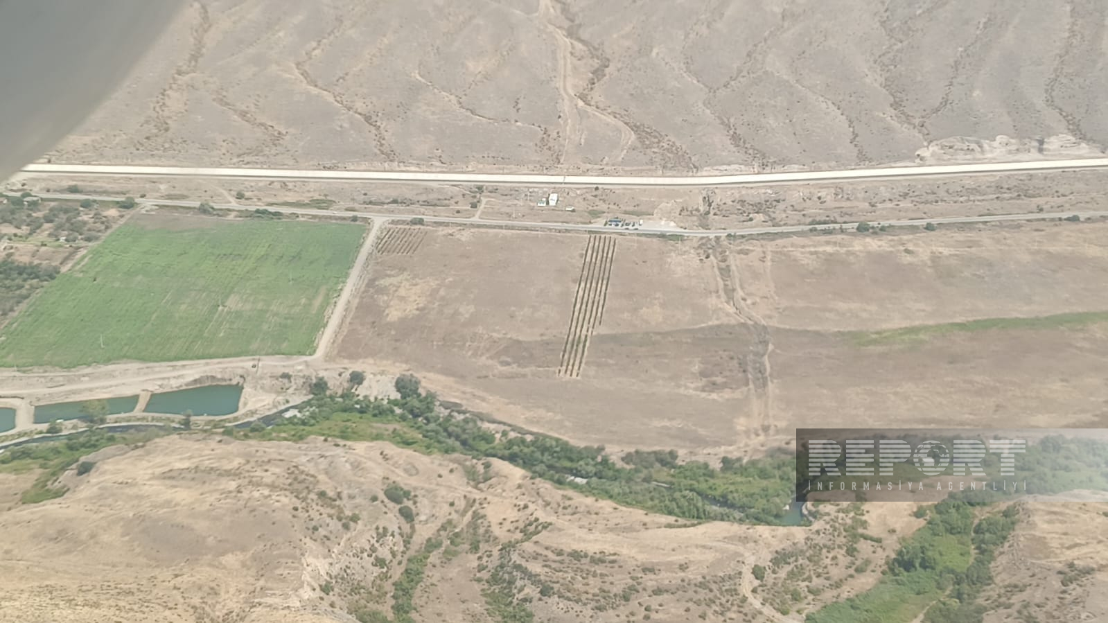 Helikopterlər yanğını söndürmək üçün suyu yaxınlıqdakı Suqovuşan su anbarında götürürlər.