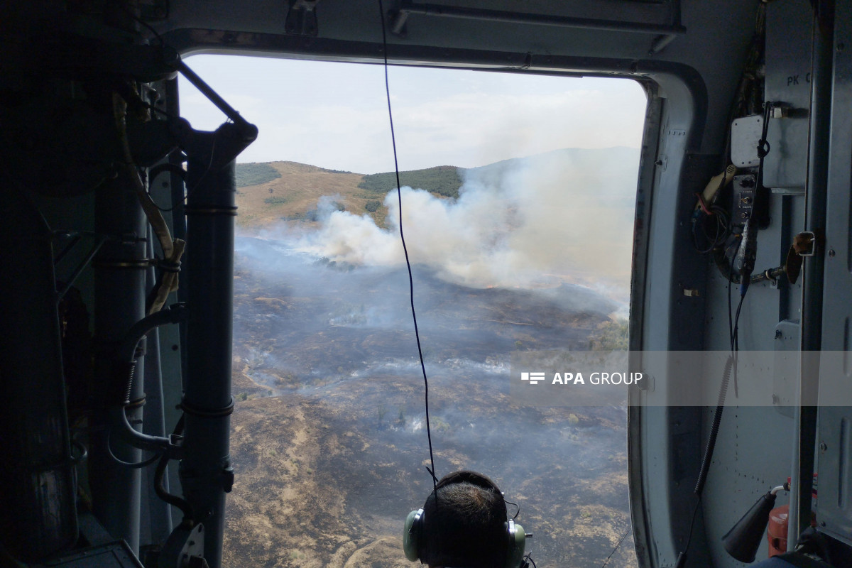 APA-nın əməkdaşı yanğının söndürülmə prosesini helikopterdən müşahidə edib və lentə alıb.
