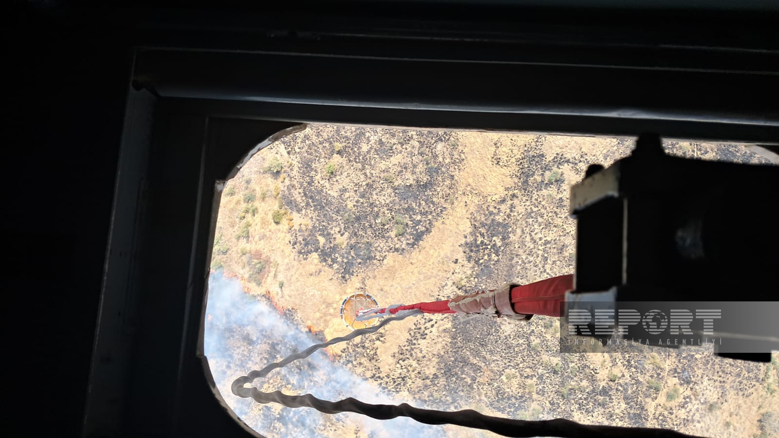 Helikopterlər yanğını söndürmək üçün suyu yaxınlıqdakı Suqovuşan su anbarında götürürlər.