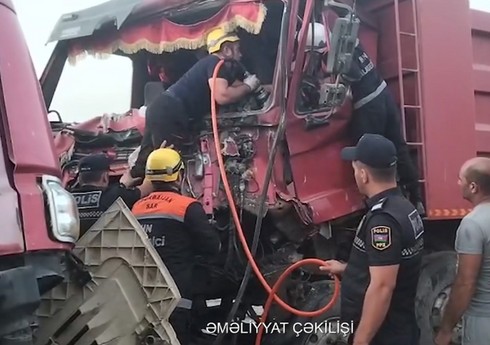 Hadisə yerində əməliyyat şəraiti qiymətləndirilərkən müəyyən olunub ki, “Shacman” markalı yük avtomobillərinin toqquşması nəticəsində yol-qəza hadisəsi baş verib və hər iki yük avtomobilinin sürücüsü deformasiyaya uğramış avtomobildə sıxılı vəziyyətdə qalıb.