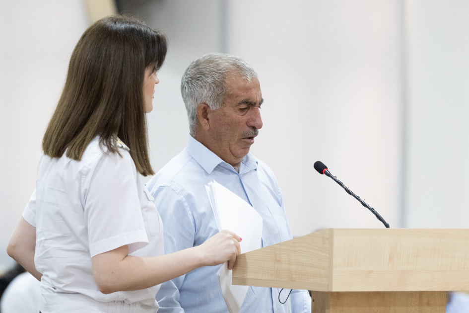 Hakim Zeynal Ağayev prosesdə ilk dəfə iştirak edən zərərçəkmiş şəxslərə məhkəmə heyətini, dövlət ittihamını müdafiə edən prokurorları, tərcüməçiləri və s. təqdim edib, habelə onların qanunvericiliklə nəzərdə tutulmuş hüquqlarını və vəzifələrini izah edib.