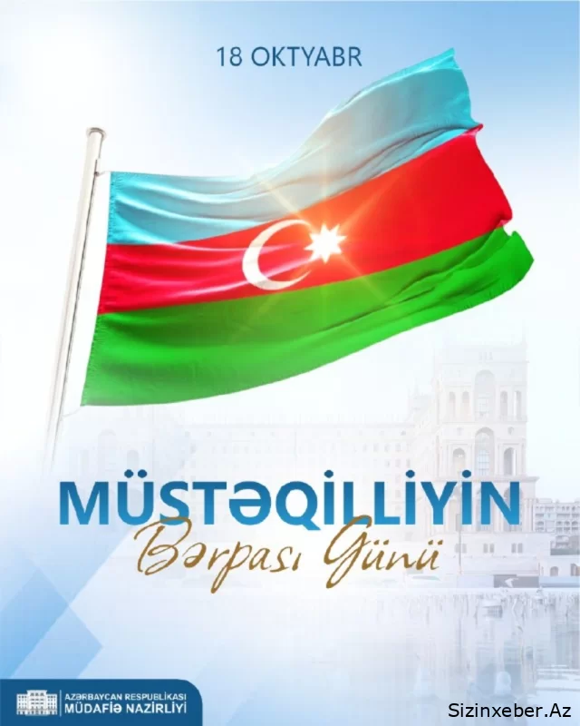 Azərbaycan Müdafiə Nazirliyi 18 Oktyabr - Müstəqilliyin Bərpası Günü münasibətilə sosial media hesablarında paylaşım edib.